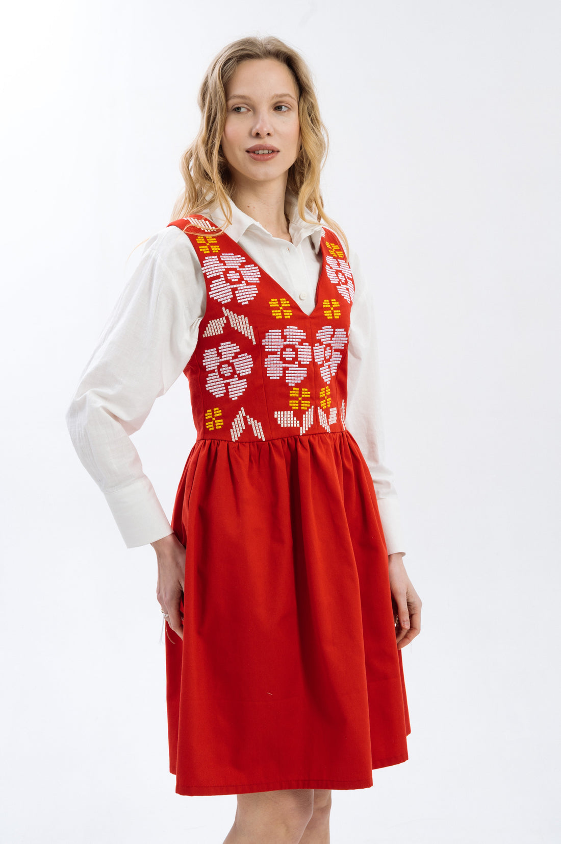 Цей яскравий червоний сарафан є чудовим поєднанням народних традицій і сучасного стилю. Він виконаний у...