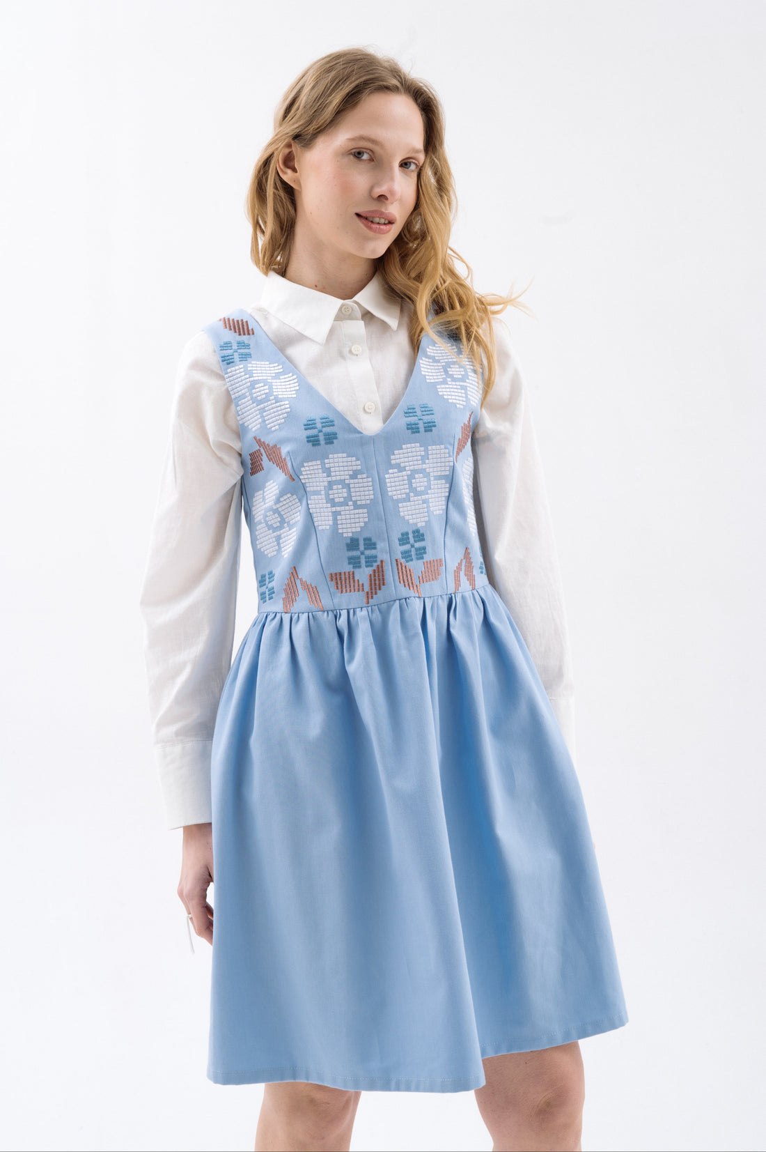 Ця сукня у ніжно-блакитному кольорі — вдале поєднання лаконічного дизайну та витончених етнічних деталей. Виготовлена...