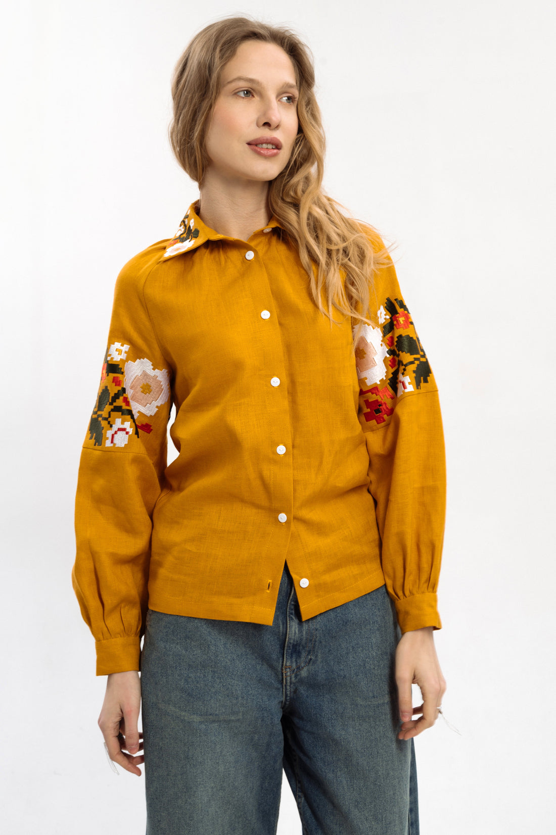 Лляна блузка сонячного жовтого кольору з вишивкою