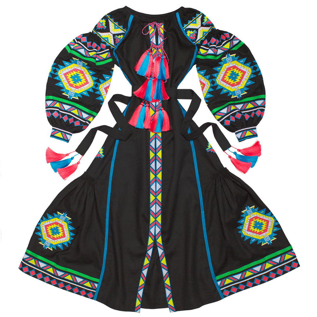 Black Long Dress With Colorful Embroidery "Forest Song"