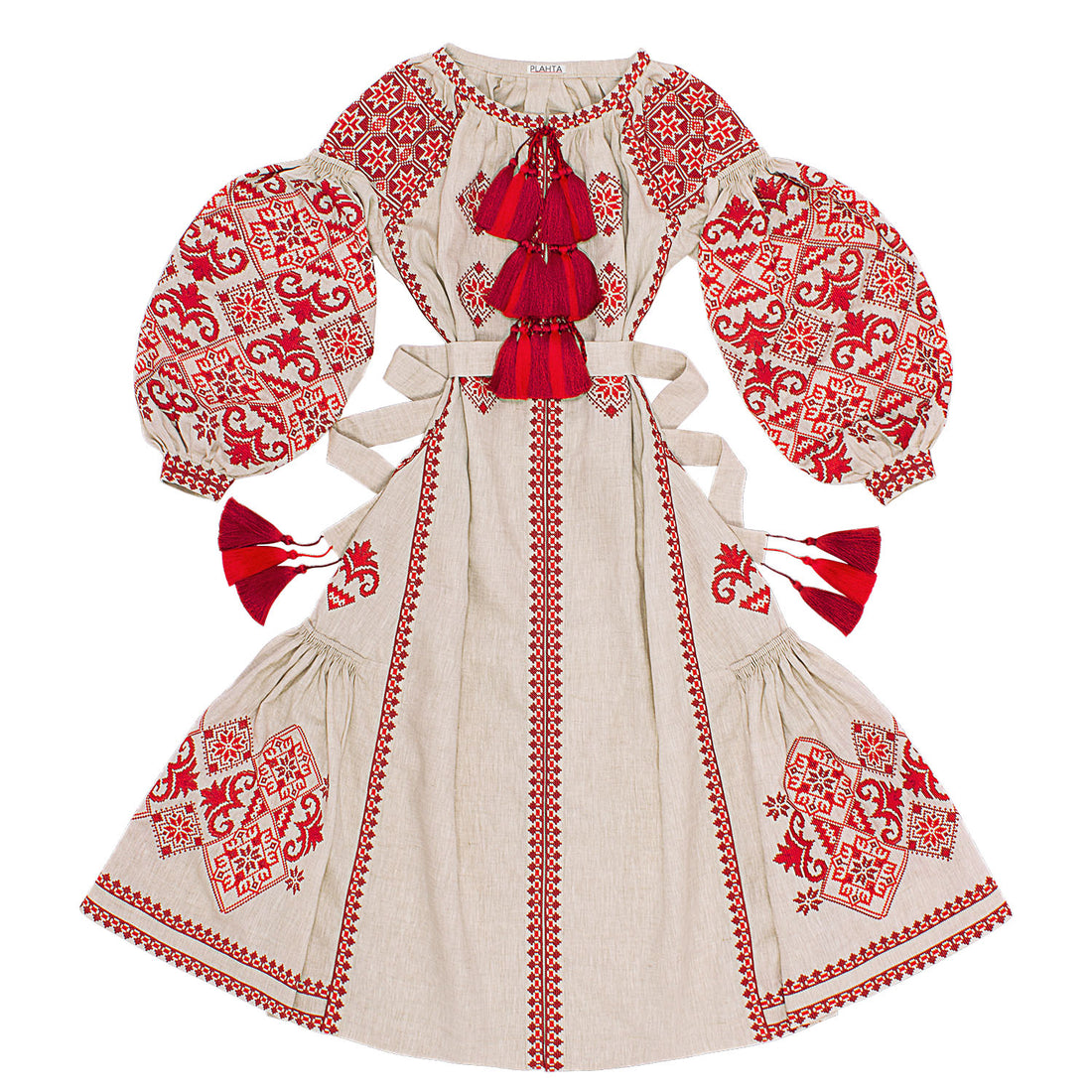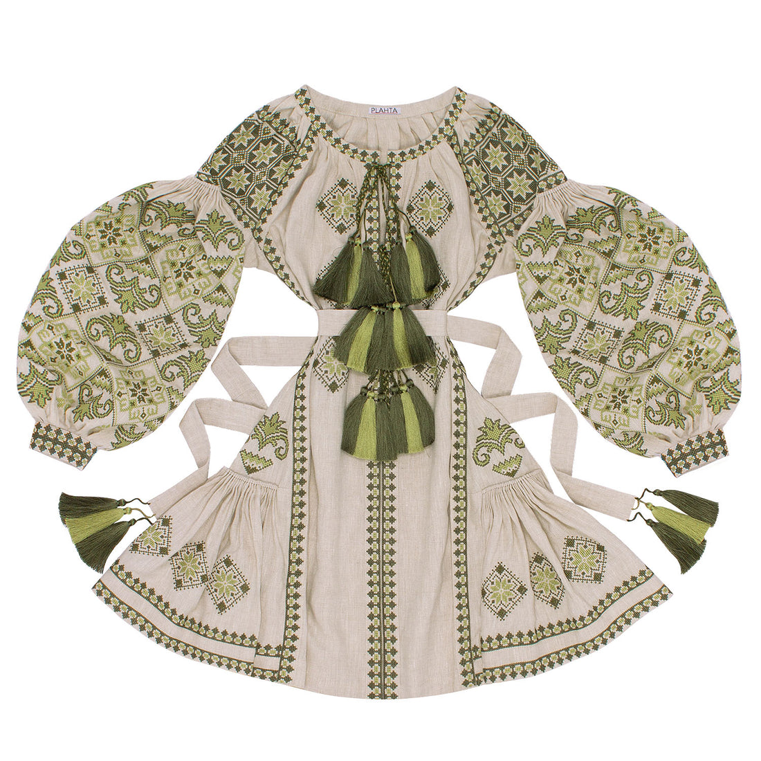 Long Linen Dress "Spring Beauty" With Traditional Ornament