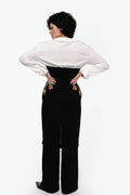 The corset pairs perfectly with both pants and skirts or dresses. Owning this garment will add an unmatched touch of distinctiveness and sophistication to your wardrobe.