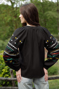 Black Embroidered Shirt With Bright Ethnic Embroidery
