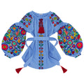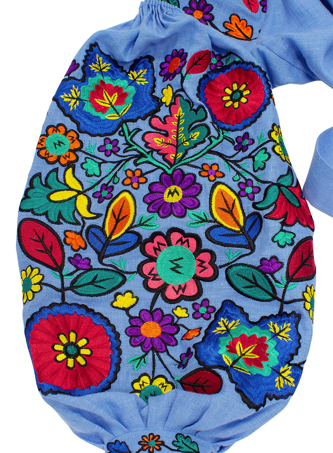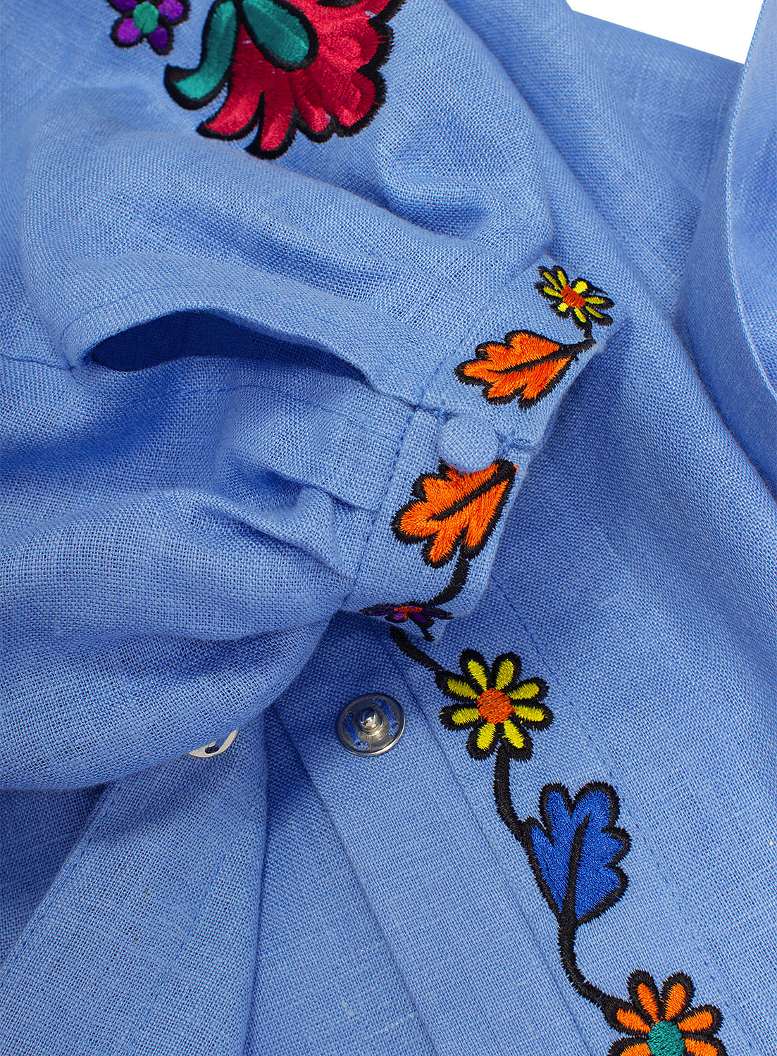 Blue Embroidered Linen Blouse "Bukovyna Flowers"