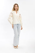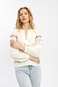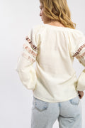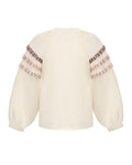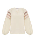 Elegant Cream-Colored Blouse With Ethnic Accents On The Sleeves