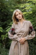 Embroidered Dress With Ethnic Ornament On The Sleeves