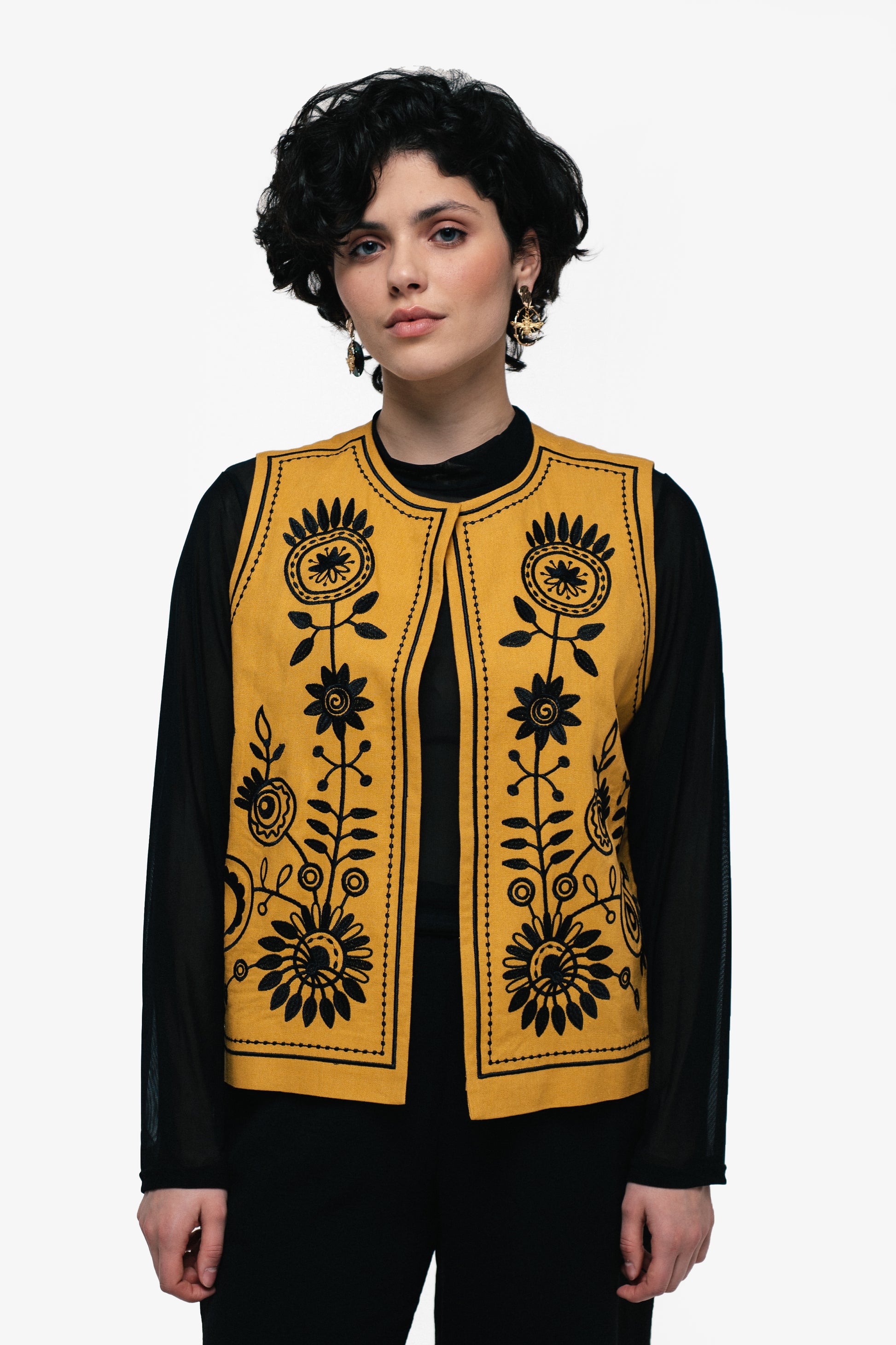 Embroidered Elegant Vest "Petrykivka" Ocher