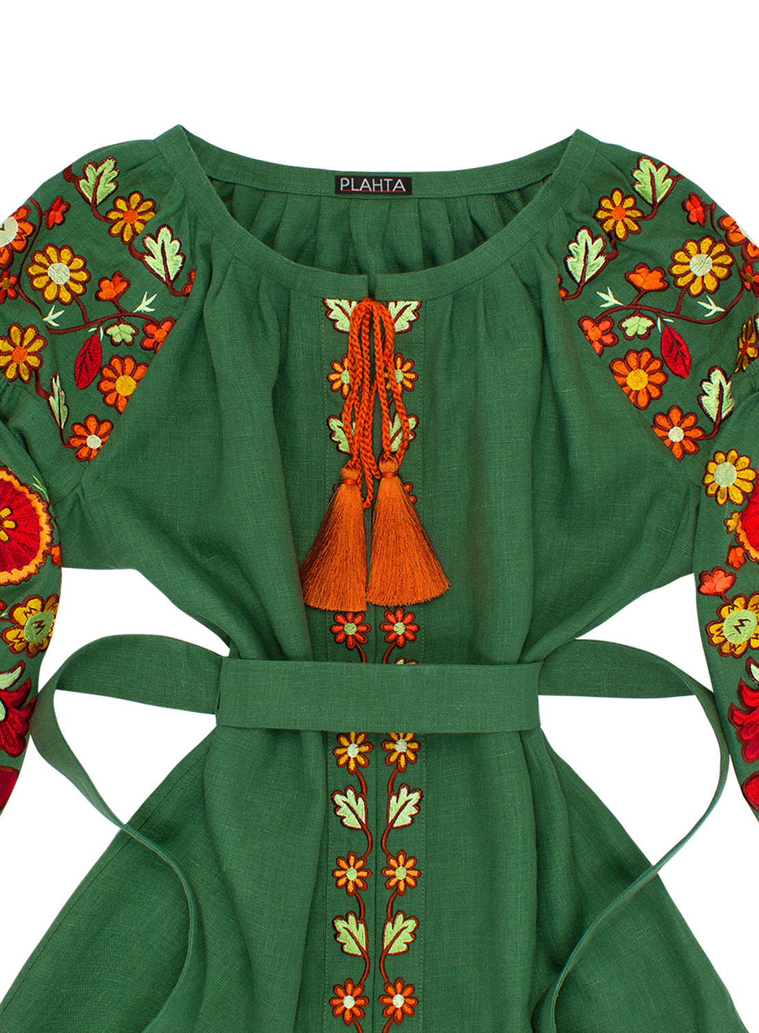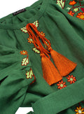 Green Embroidered Linen Blouse "Bukovyna Flowers"