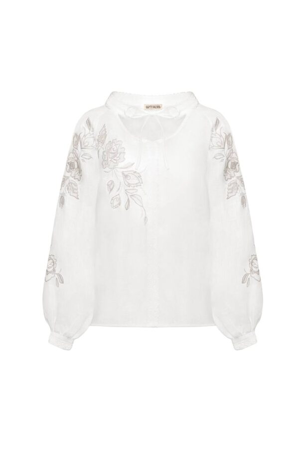 Linen Blouse With Designer Ornament "Rose"