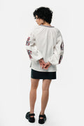 "Berehynia" Embroidered Blouse in Milk Color – this is not just a piece of clothing, but a symbol of Ukrainian culture that combines deep historical heritage with modern elegance. The name "Berehynia" was chosen deliberately, as in Ukrainian traditions, a Berehynia is depicted as an ancient goddess who protects the home, embodies femininity and motherhood, and preserves the traditions and wisdom passed down through generations. She represents both power and grace, guarding her family and their legacy.