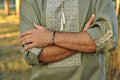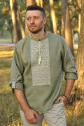 Men's Embroidered Shirt Made Of Natural Linen In Khaki Color