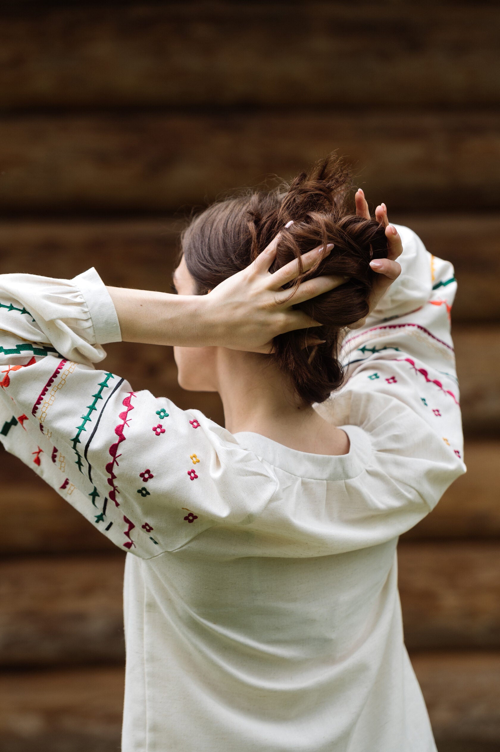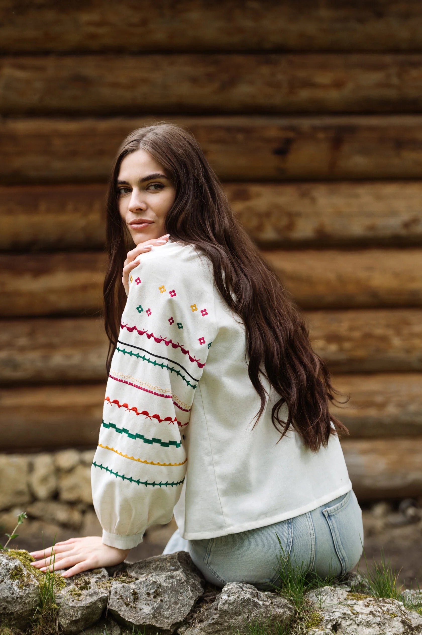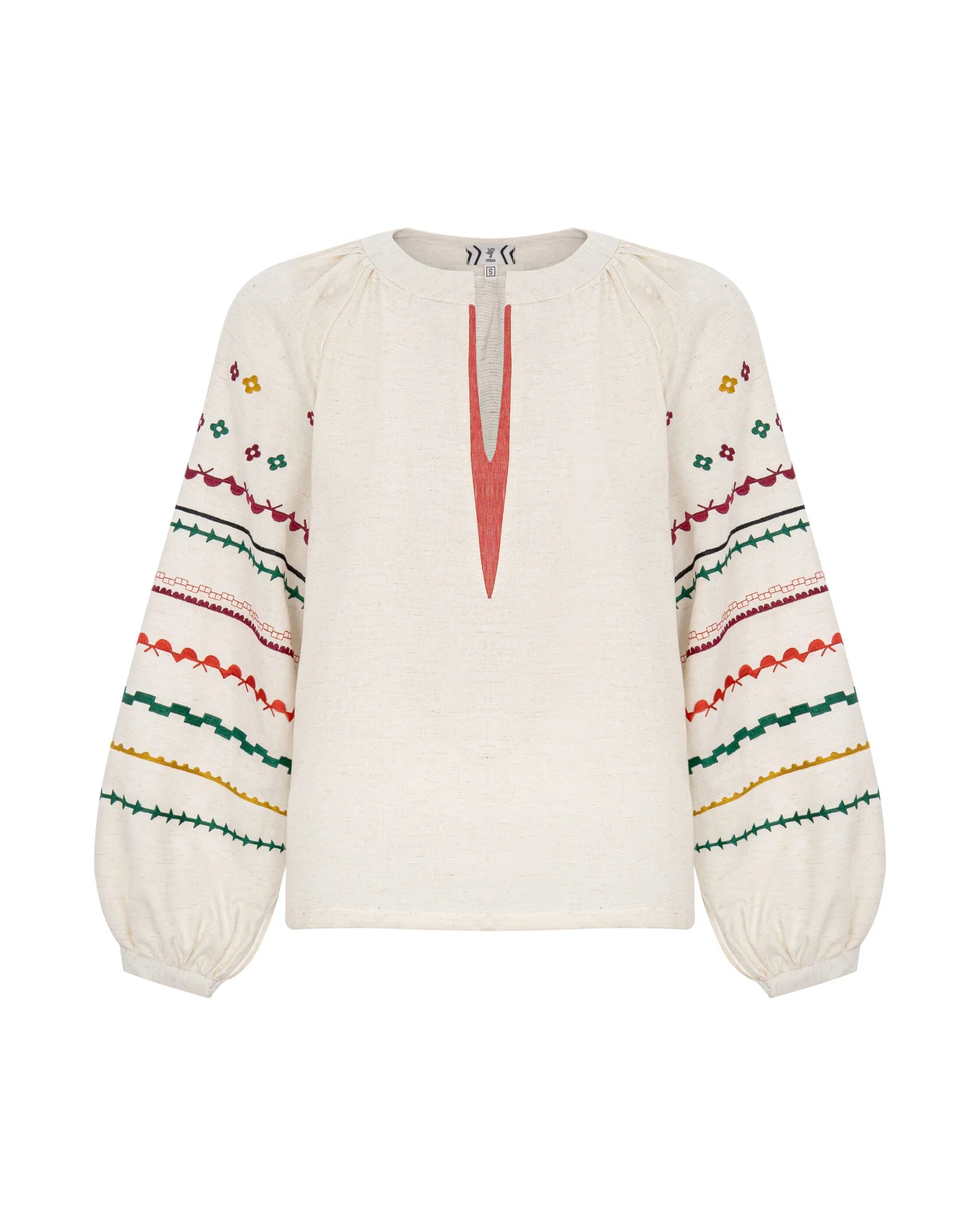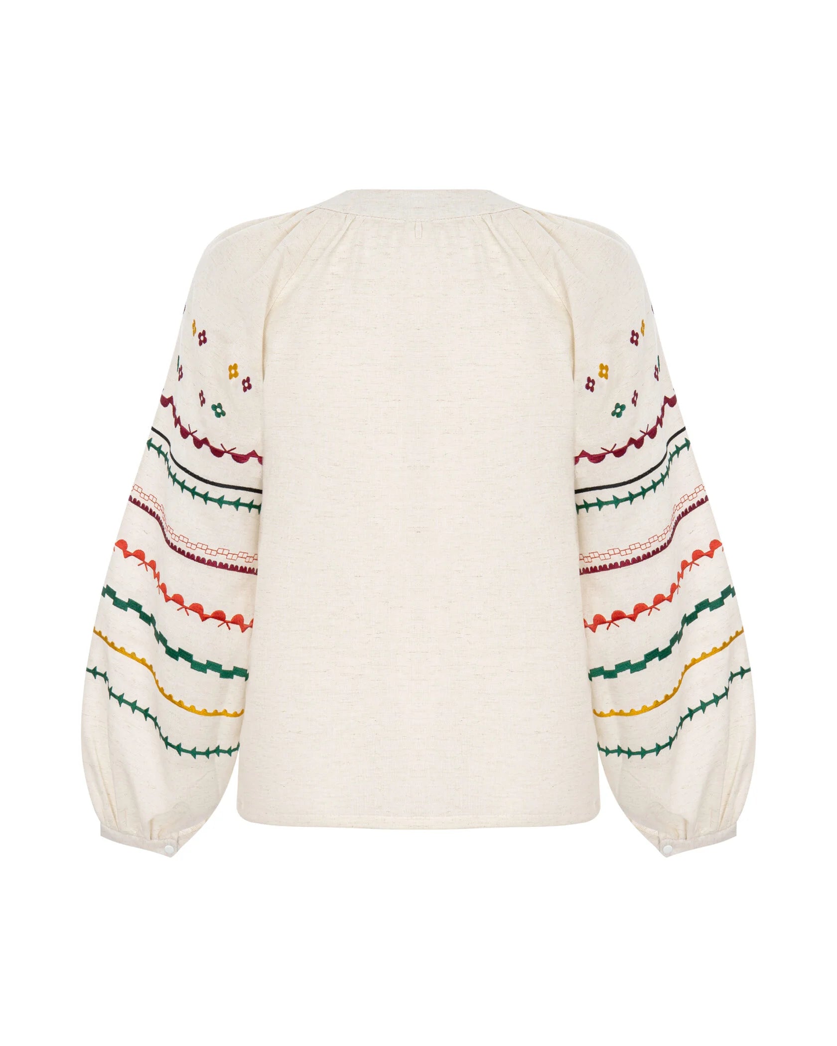 This embroidered shirt will become a versatile wardrobe staple - it can be easily styled both for casual looks with jeans or trousers and for special occasions with skirts or linen trousers.