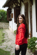 This embroidered shirt is perfect for festive occasions, business meetings or city strolls. The red color exudes confidence and the laconic embroidery keeps the look understated and elegant. Pair it with classic pants, skirts or jeans for a flawless look every time.