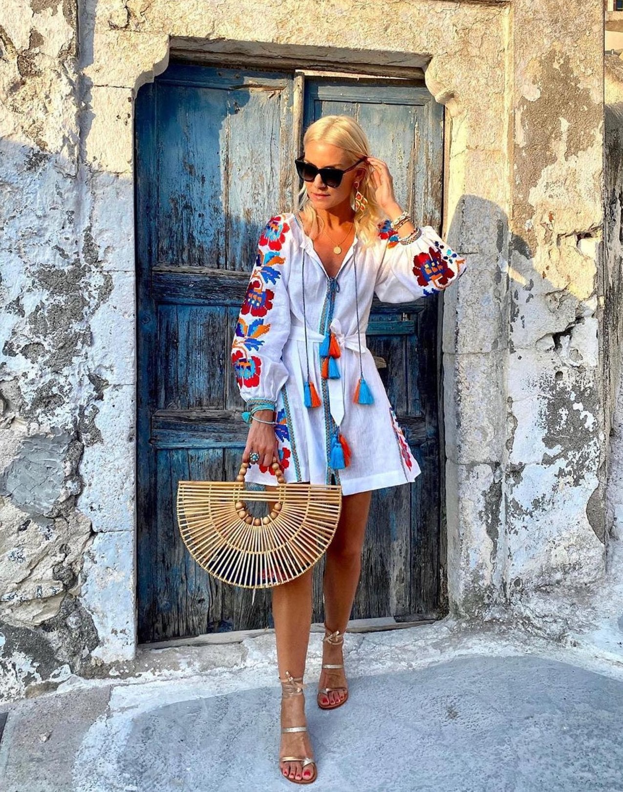 White Dress With Wedges And Colorful Embroidery "Flower Fantasy"