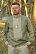 Чоловіча сорочка-вишиванка з натурального льону кольору хакі