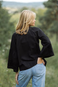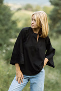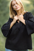 Чорна вишита блуза оверсайз «чорне по чорному»