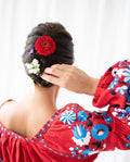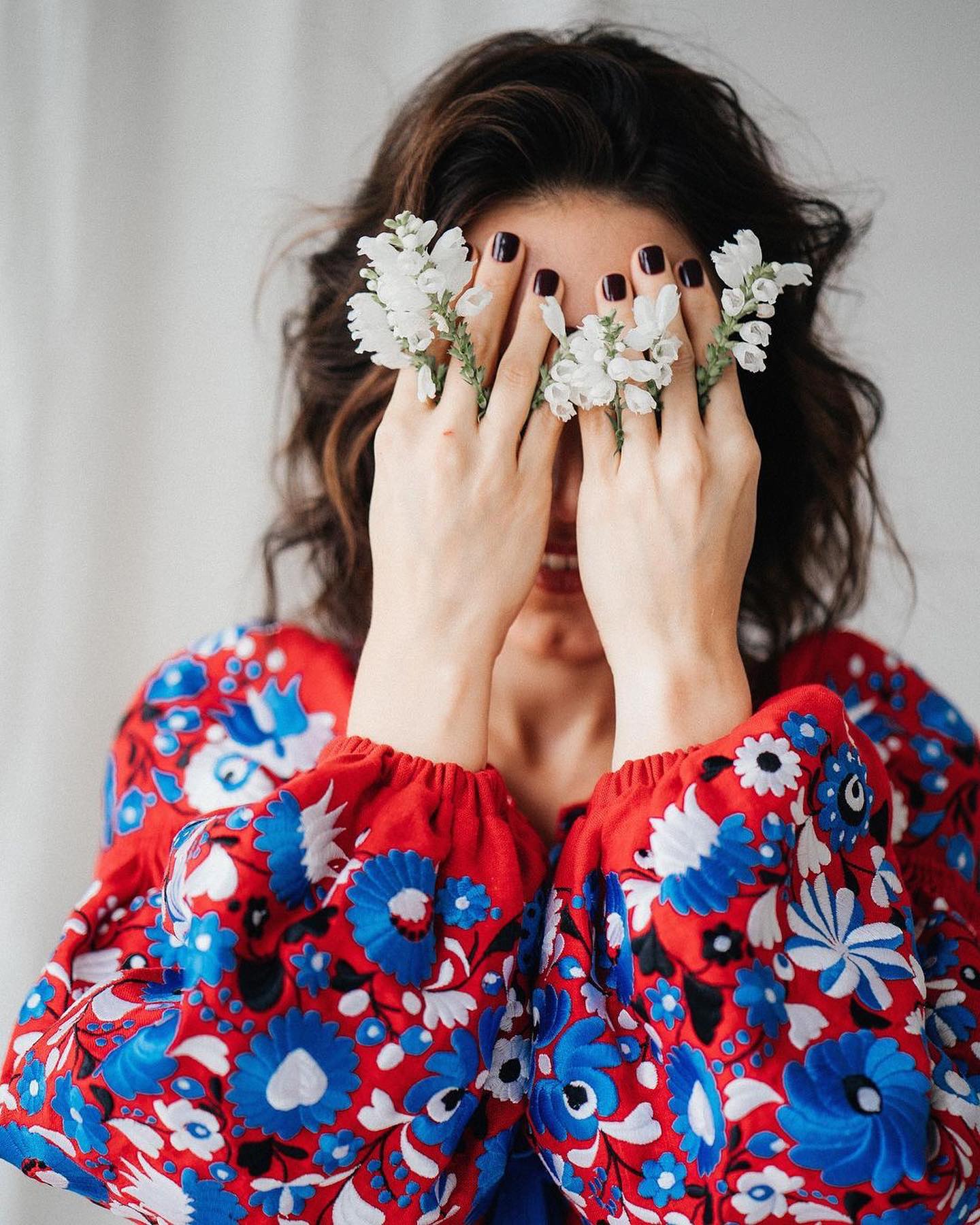 Зверніть увагу на багаті рослинні орнаменти на сукні. Ви можете побачити справжній квітковий бум, який уособлює гармонію людини із природою: тут є і квіти, і листочки. А поєднання синіх та білих візерунків на полотні червоного кольору змушує затамувати подих. Ось саме так на вас буде дивитись ваше оточення кожного разу, як ви будете носити це плаття!