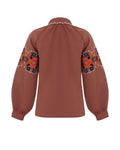 Ця лляна блузка — витончене поєднання українських традицій і сучасного мінімалізму. Виготовлена зі 100% натурального льону, вона дарує відчуття легкості та комфорту навіть у найактивніший день. Глибокий цегляний відтінок додає образу теплоти, а вишивка на комірі та рукавах — автентичності й характеру.