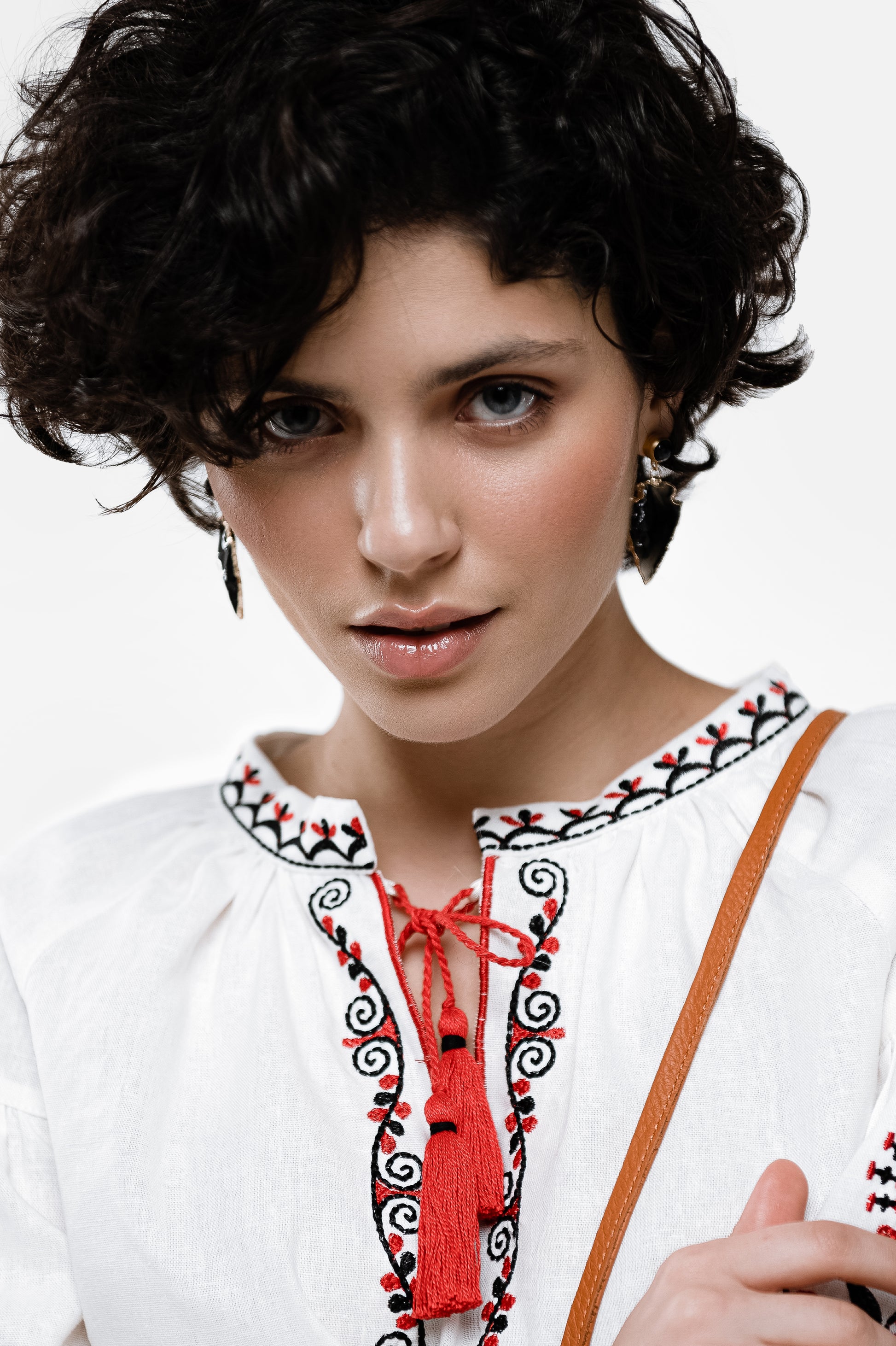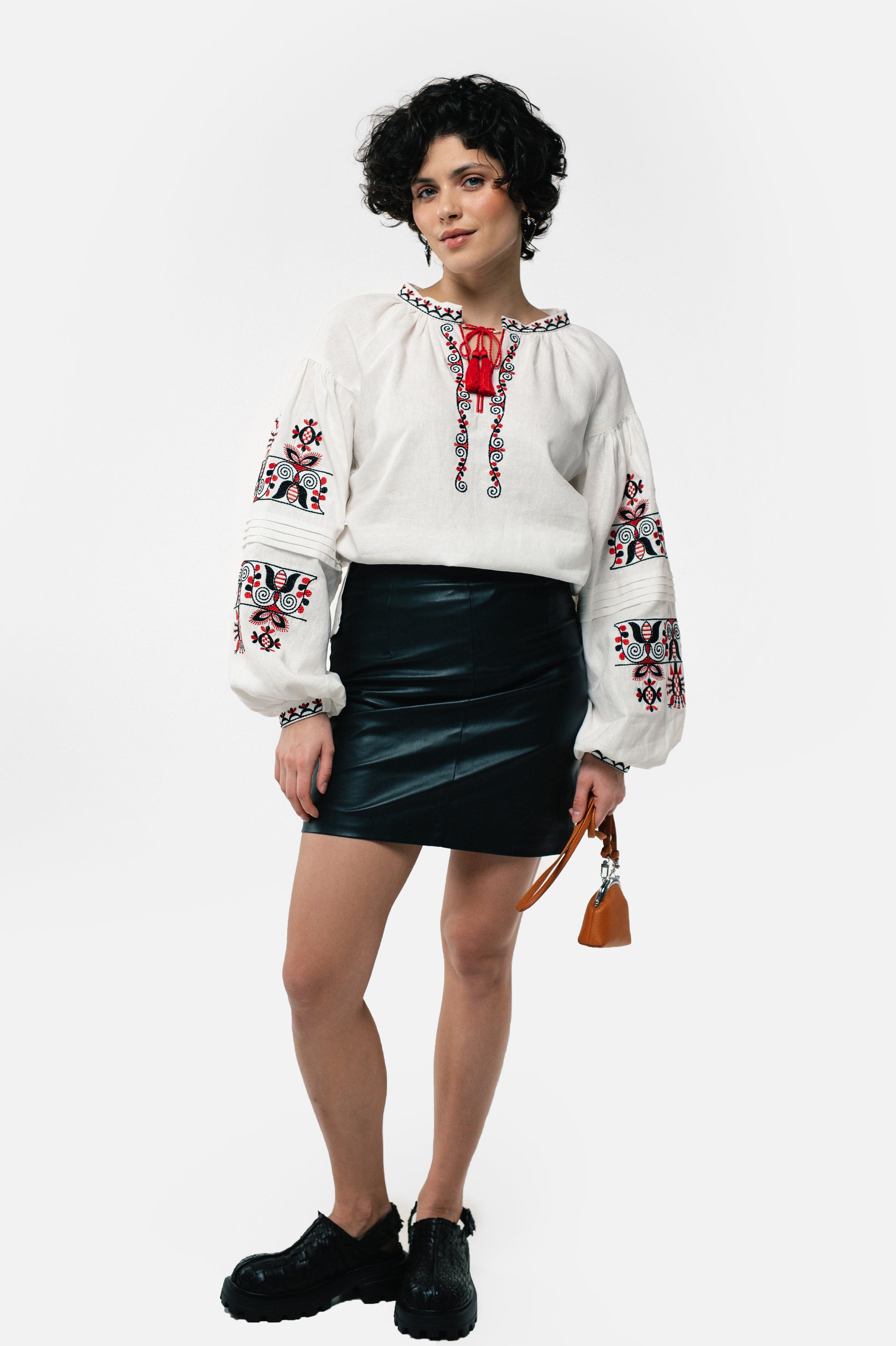 Ця модель має сучасний крій з традиційними елементами, що додає їй особливої витонченості. Вишиванка «Берегиня» чудово підкреслює жіночність і надає образу елегантності. Вона стане не тільки прикрасою вашого гардеробу, але й сильним оберегом, який буде охороняти вас у будь-яких життєвих ситуаціях. З таким виробом ви відчуєте себе не лише красивою, але й частиною великої української традиції, що живе і розвивається у сучасному світі.