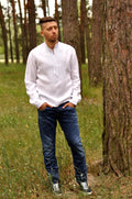 Зручна, стильна та дійсно українська – ця вишита сорочка з льону є безпрограшним варіантом для сучасного чоловіка. Вона має вільний фасон, традиційний комір-стійку та довгі рукави, тож в ній буде зручно попри забаганки погоди. Також універсальності цій вишиванці додає патик, що дозволяє регулювати довжину рукава: був довгий, а став короткий та навпаки.